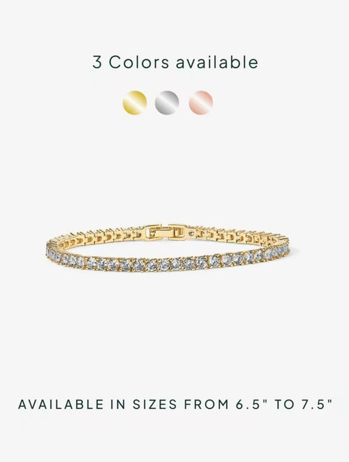 Amore 14K Gold Plated 3mm Cubic Zirconia Classic Tennis Bracelet