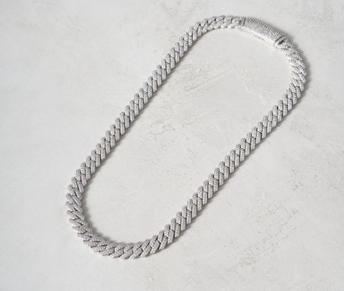 Amore 12mm Prong Cuban Chain Plated Diamond Gold